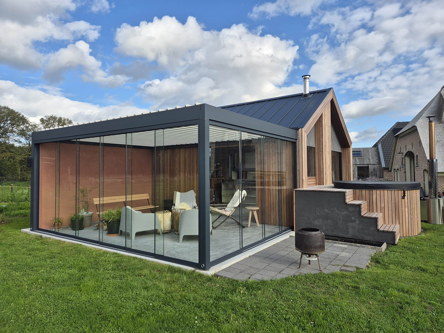 De Alba ademt een sfeer van robuuste elegantie en slimme functionaliteit. Het is een overkapping die niet domineert, maar dient. Het geeft u de mogelijkheid om uw buitenruimte optimaal te benutten, ongeacht het weer of de architectuur van uw woning. De Alba past zich aan u aan, niet andersom. Dit creëert een gevoel van rust en grenzeloze mogelijkheden voor uw buitenleven.