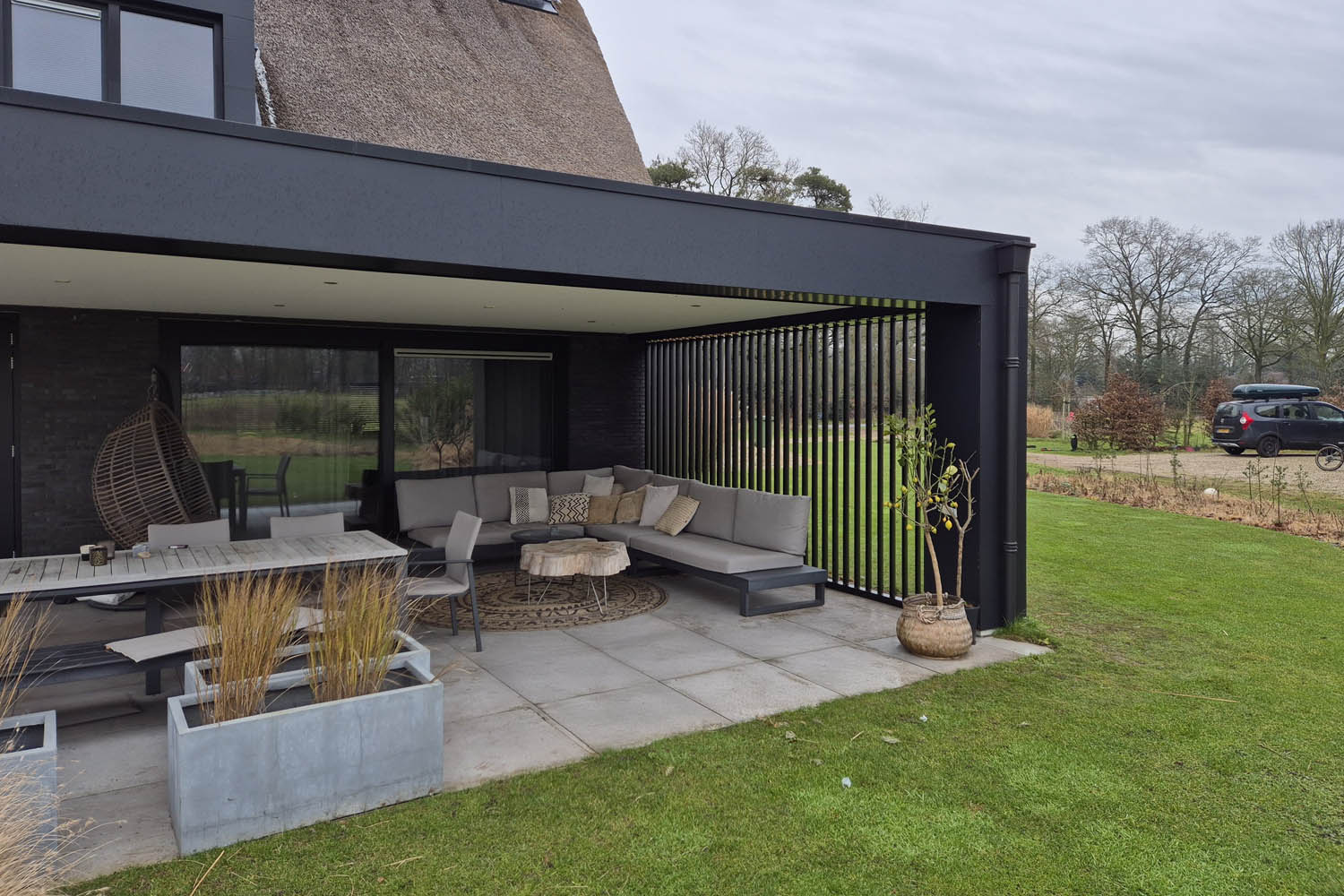Juist met het Louvre Profiel komt ons vakmanschap volledig tot zijn recht. We leveren en plaatsen deze louvre-wanden wekelijks — daardoor kennen we elke verbinding, lamel en afwerking. Kwaliteit begint bij een kloppende maatvoering: in de configurator voert u breedte en hoogte in voor een directe prijs op maat, vervolgens controleren wij de situatie en stemmen we alles af op uw overkapping en gevel.