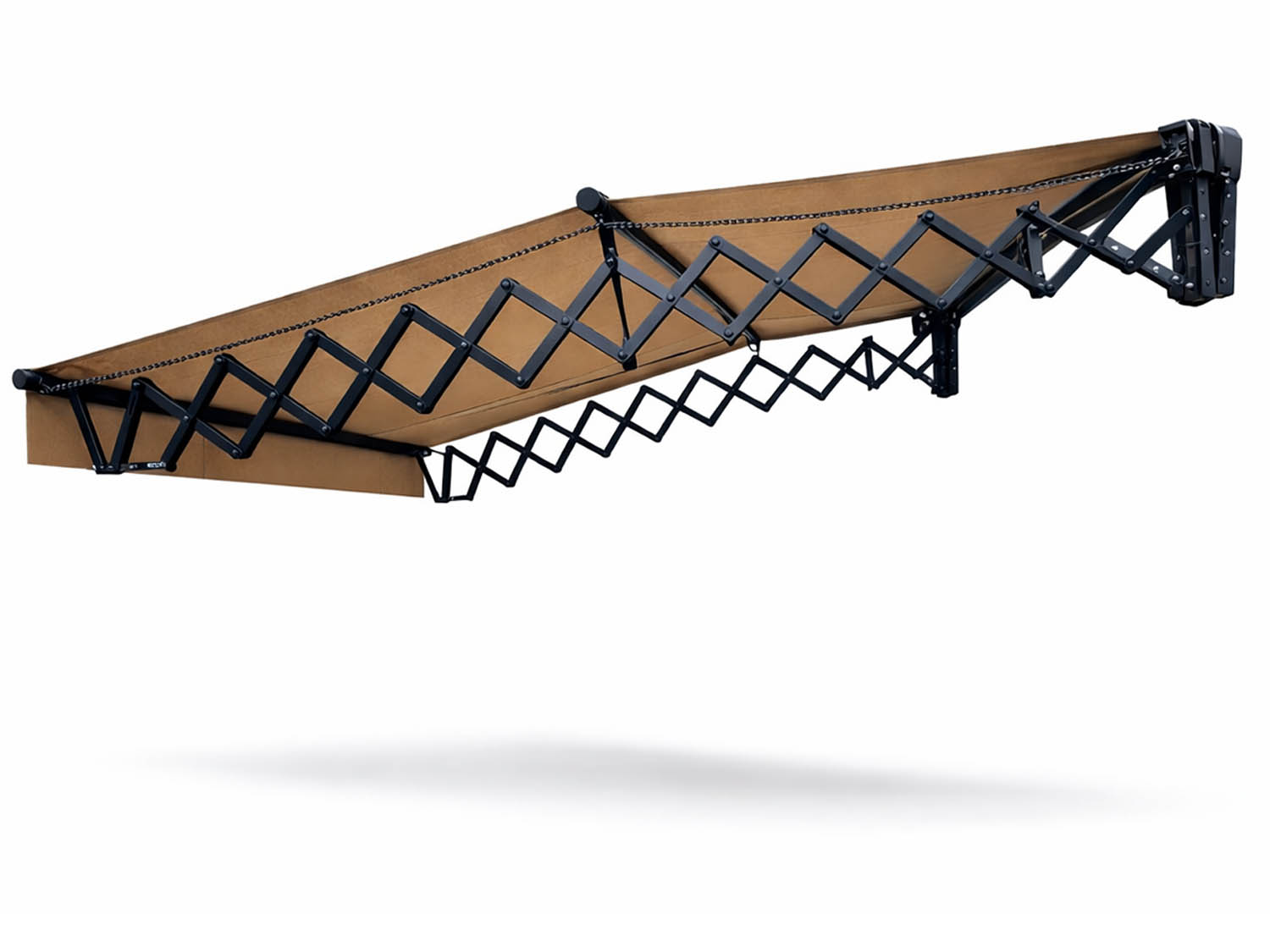 Dit systeem is gebouwd voor dagelijks gebruik: een robuste schaararm-constructie die het doek strak houdt en stabiel uitzet, ook bij grotere breedtes. Je krijgt veel uitval zonder staanders op de grond — ideaal voor een vrije doorloop op het terras. Het waterdichte doek zorgt voor extra bescherming bij regen, zodat je minder snel stoelen naar binnen hoeft te halen. Met een maximale uitval tot 5,50 meter maak je een groot deel van je terras direct bruikbaar.