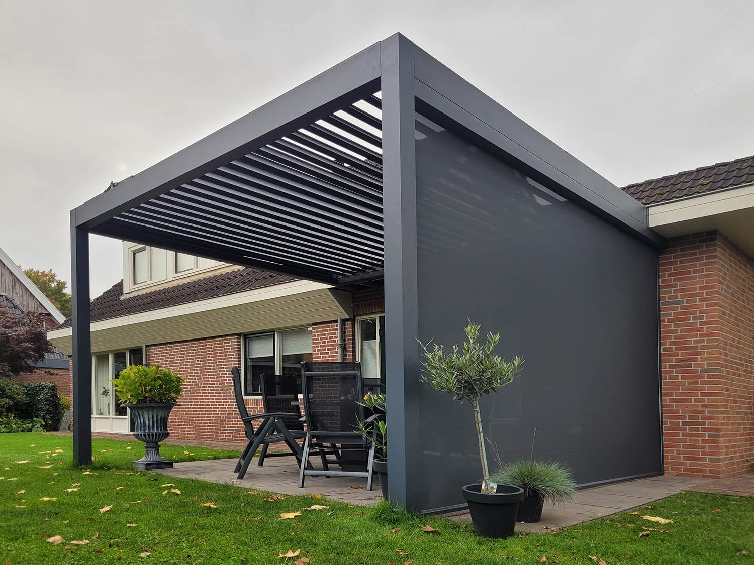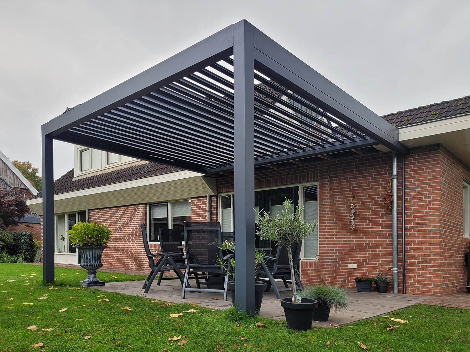 Onze standaard lamellenoverkapping is de slimme keuze voor wie zoekt naar de perfecte balans tussen comfort, design en een eerlijke prijs. Met één druk op de knop bepaalt u zelf de ideale lichtinval en creëert u een beschutte plek tegen zon of regen.